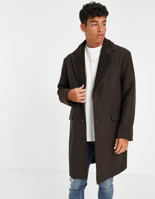 ASOS DESIGN overcoat with borg collar in brown