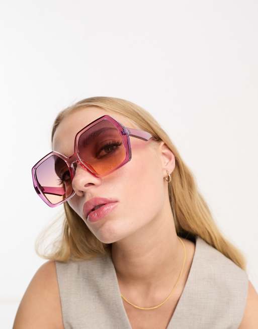 ASOS DESIGN oversized 70s sunglasses in crystal pink
