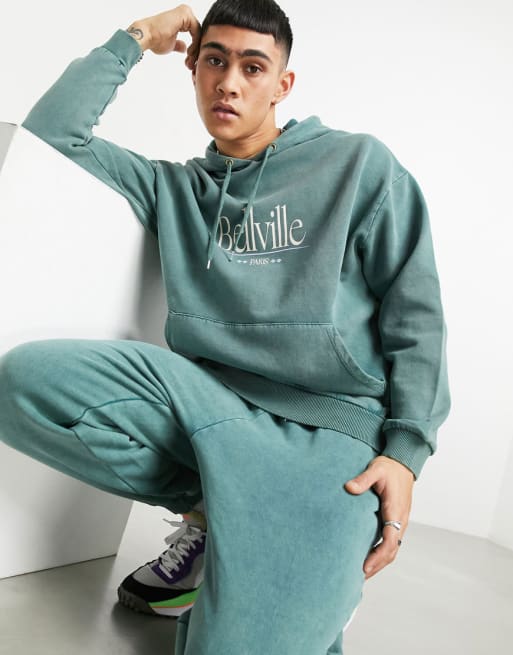 ASOS DESIGN oversized acid wash tracksuit with print in green