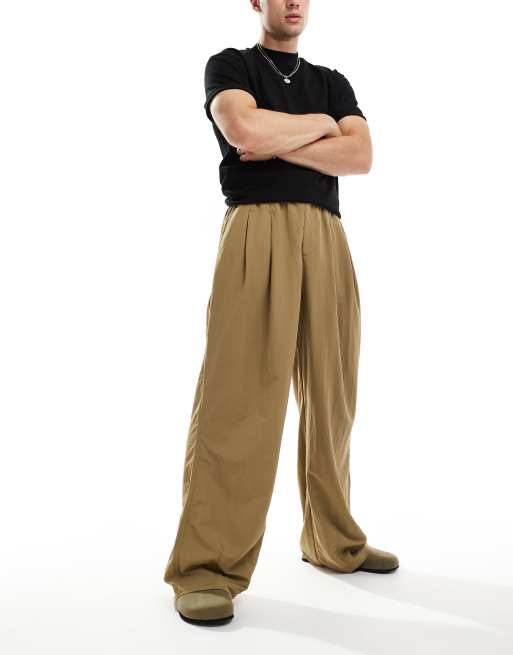 ASOS DESIGN oversized baggy chino with pleats in khaki