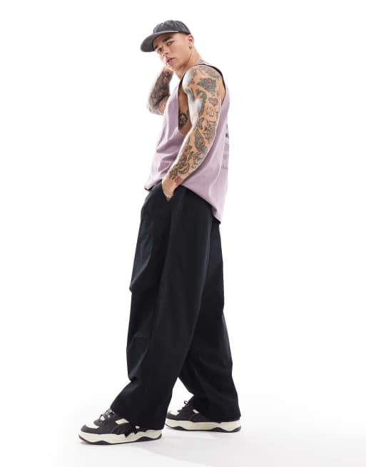 ASOS DESIGN oversized baggy parachute trouser in black