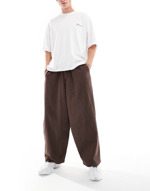 ASOS DESIGN oversized baggy trouser with elasticated waist in chocolate brown