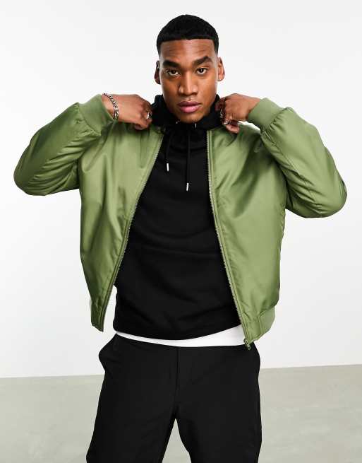 ASOS DESIGN oversized bomber jacket with detachable sleeves in green