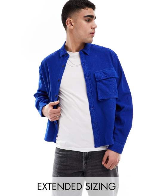 ASOS DESIGN oversized boxy diagonal cord shirt in cobalt blue