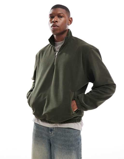 ASOS DESIGN oversized boxy quarter zip fleece sweatshirt in green