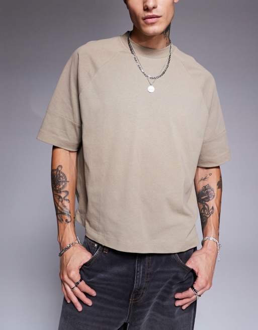 ASOS DESIGN oversized boxy raglan t-shirt in stone