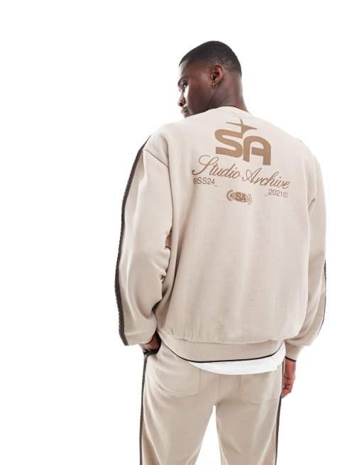 ASOS DESIGN oversized co-ord v neck studio archive sweat in beige