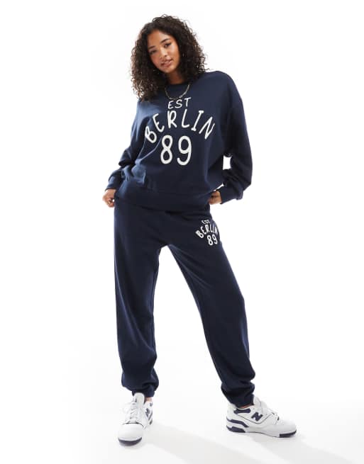 ASOS DESIGN oversized co-ord with applique berlin graphic in navy - NAVY