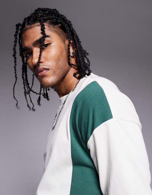 ASOS DESIGN oversized colour block t-shirt in cream and green