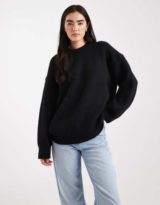ASOS DESIGN oversized crew neck cocoon jumper in rib in black