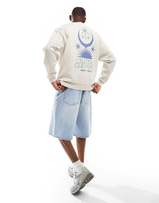 ASOS DESIGN oversized crew neck sweatshirt with celestial star back print in greige