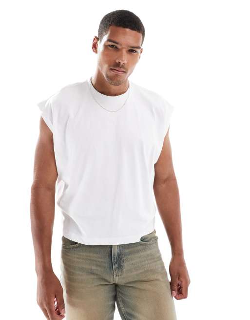 ASOS DESIGN oversized cropped sleeveless t-shirt in white