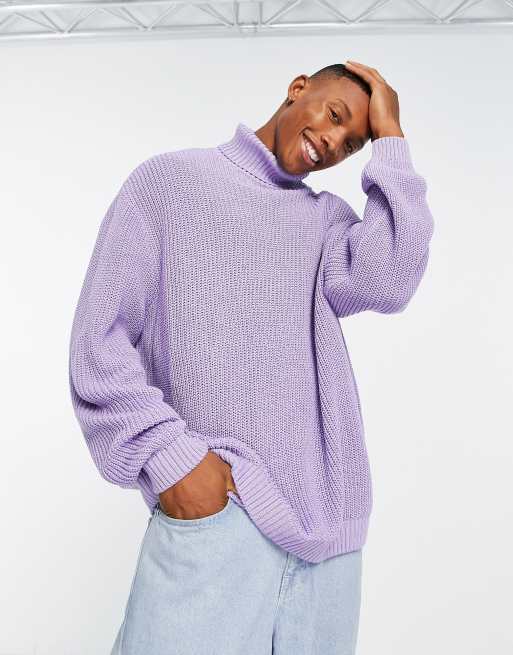 ASOS DESIGN oversized fisherman rib roll neck jumper in lilac