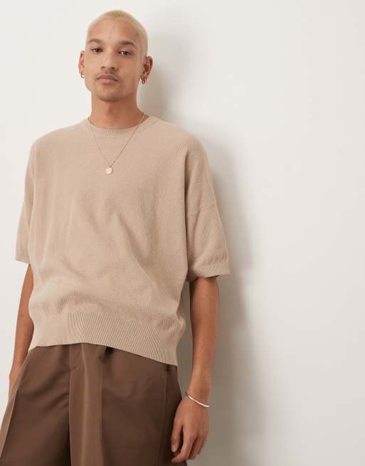 ASOS DESIGN oversized fit knitted pique texture tshirt in stone