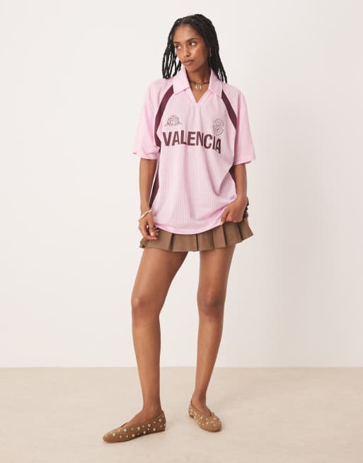 ASOS DESIGN oversized football shirt with valencia graphic in pink