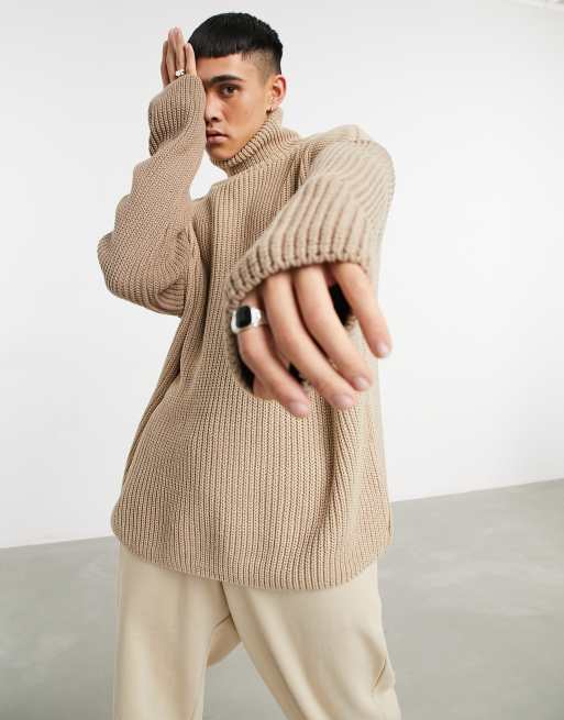 ASOS DESIGN oversized funnel neck jumper with contrast sleeves in beige