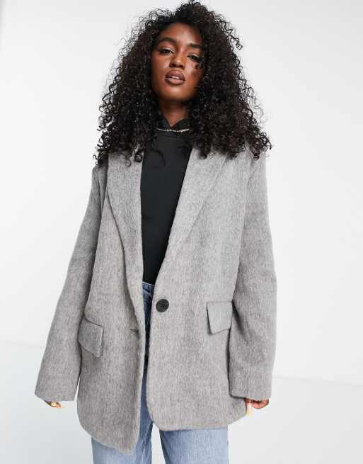 ASOS DESIGN oversized grandad wool mix jacket in grey