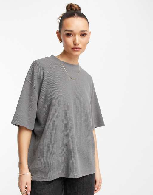ASOS DESIGN oversized heavy weight t-shirt with side splits in waffle in washed black