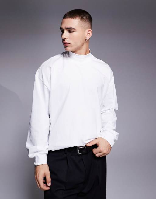 ASOS DESIGN oversized heavyweight high neck long sleeve t-shirt in white