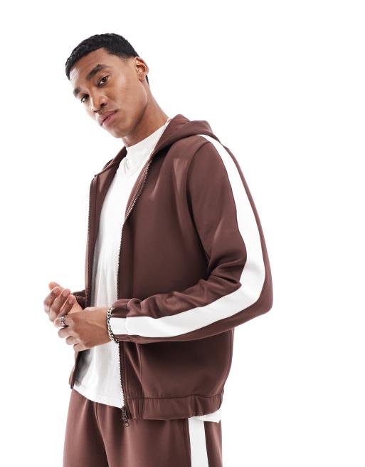 ASOS DESIGN oversized hoodie co-ord with taping in brown