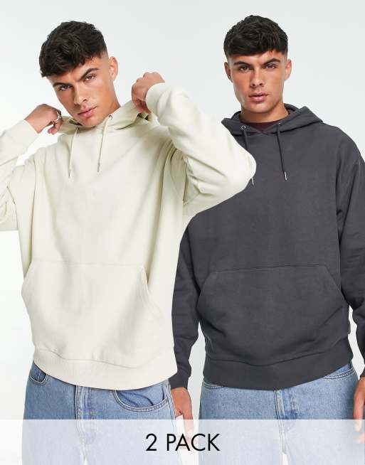ASOS DESIGN oversized hoodie in light grey & dark grey 2 pack