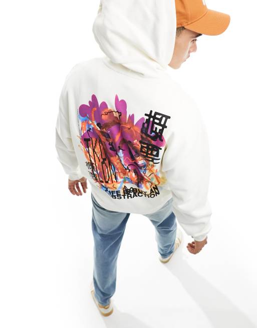 ASOS DESIGN oversized hoodie in off white with art back print