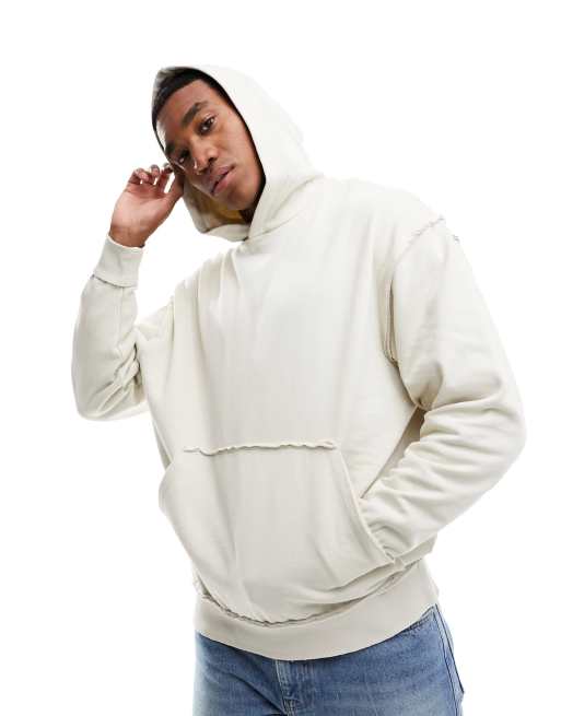 ASOS DESIGN oversized hoodie with distressing in beige