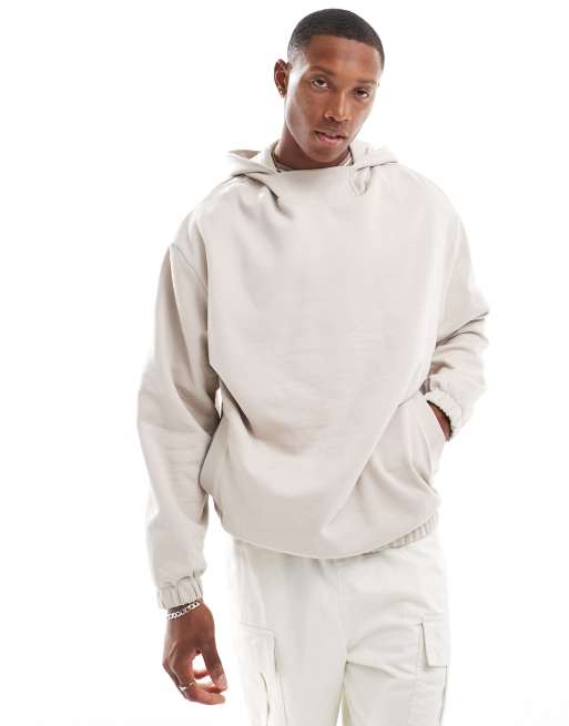 ASOS DESIGN oversized hoodie with hood detail in stone