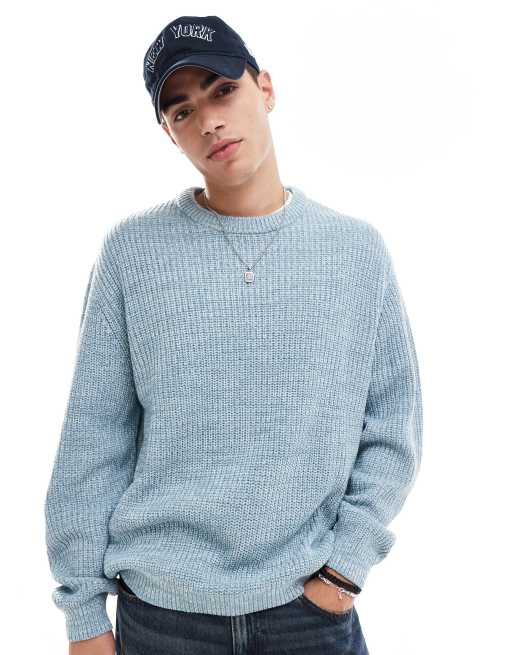 ASOS DESIGN oversized knitted fisherman rib jumper in blue twist