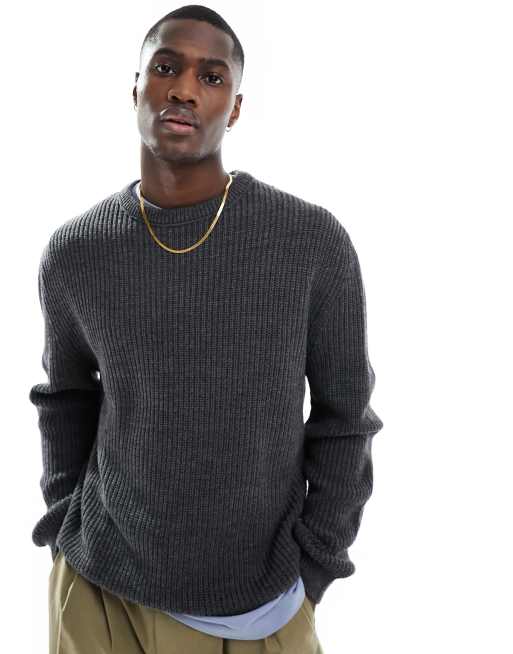 ASOS DESIGN oversized knitted fisherman rib jumper in charcoal