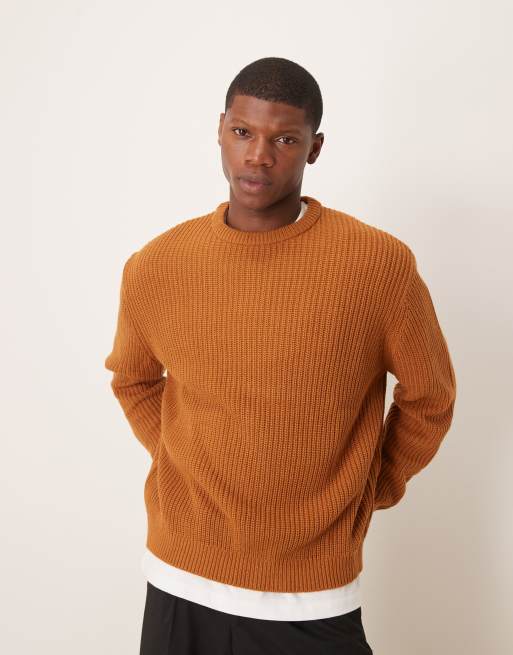ASOS DESIGN oversized knitted fisherman rib jumper in tan