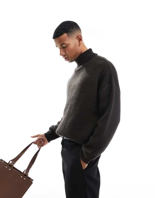 ASOS DESIGN oversized knitted fluffy roll neck jumper in brown
