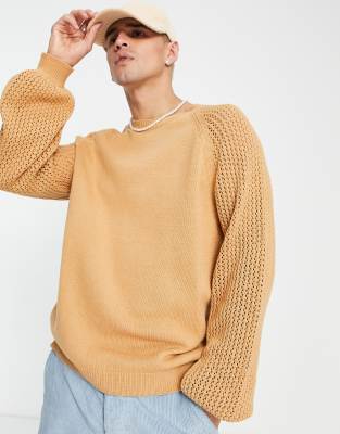 ASOS DESIGN oversized knitted jumper contrast sleeves in light brown
