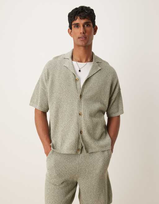 ASOS DESIGN oversized knitted revere button through polo shirt co-ord in sage green