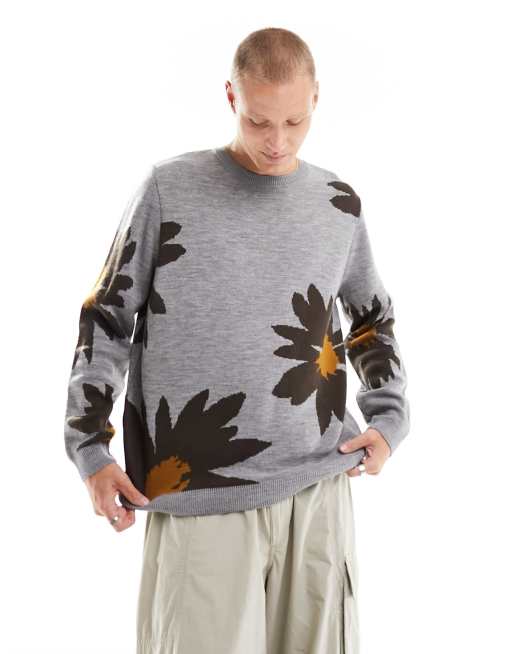 ASOS DESIGN oversized knitted sunflower crew jumper jumper in grey