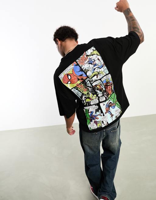 ASOS DESIGN oversized license graphic tee in black with Marvel comic strip print - BLACK