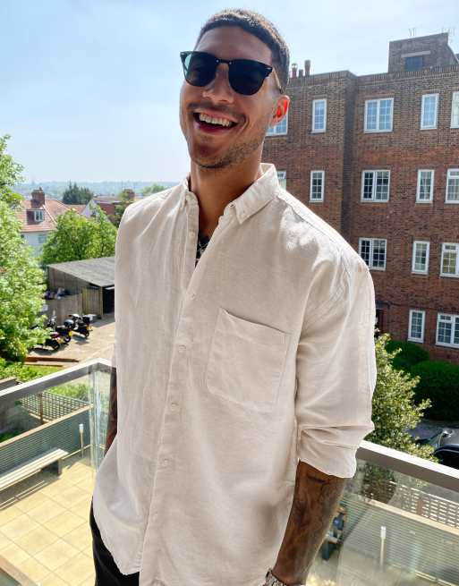 ASOS DESIGN oversized linen shirt in ecru