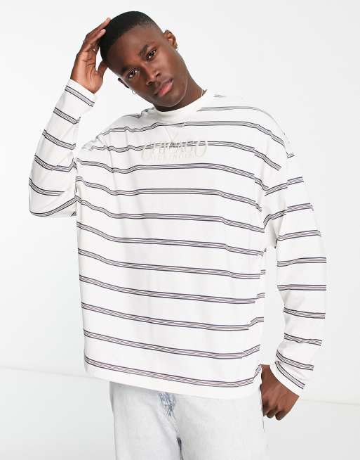 ASOS DESIGN oversized long sleeve stripe t-shirt in off white with front print