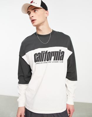 ASOS DESIGN oversized long sleeve t-shirt in off white & black colour block with California print