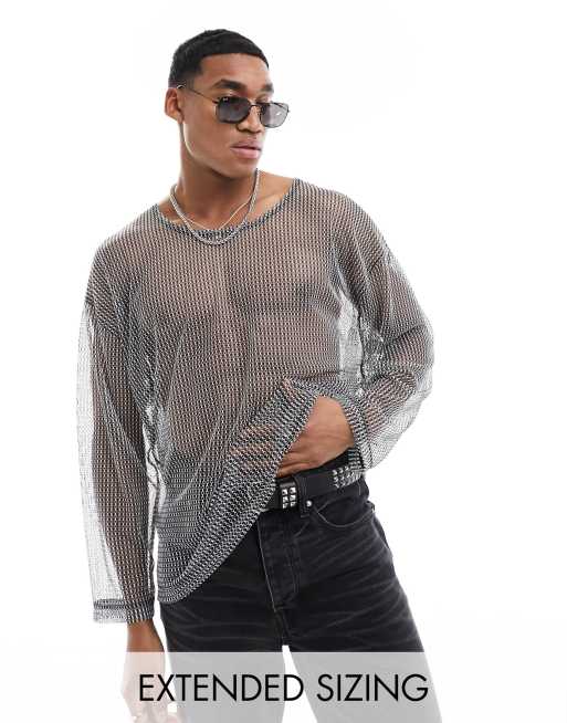 ASOS DESIGN oversized long sleeve t-shirt in open mesh