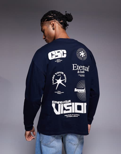 ASOS DESIGN oversized long sleeve t-shirt with street graphics in navy