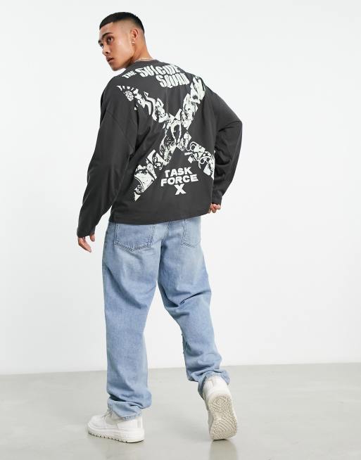 ASOS DESIGN oversized long sleeve t-shirt with Suicide Squad print in black