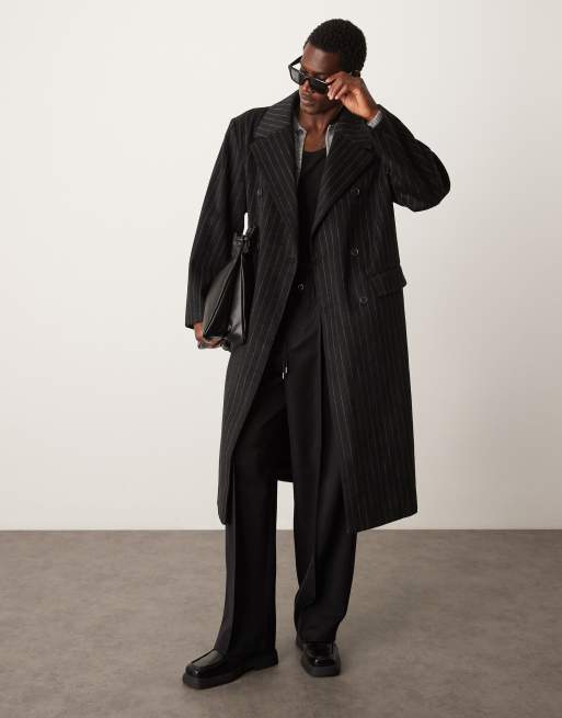 ASOS DESIGN oversized longline wool look pinstripe coat in black