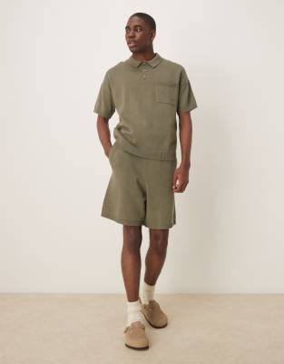 ASOS DESIGN oversized midweight knitted cotton shorts co-ord in khaki