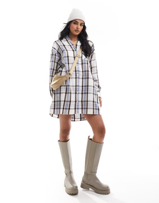 ASOS DESIGN oversized mini check shirt dress in cream check
