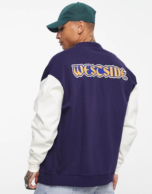 ASOS DESIGN oversized navy colour block jersey cardigan with chest print