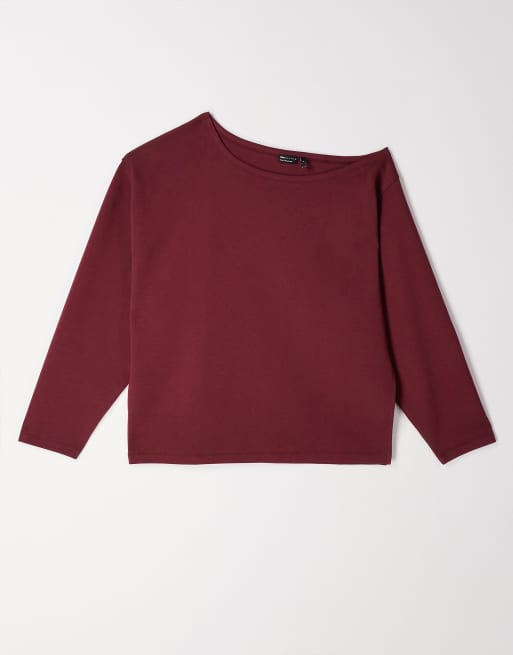 ASOS DESIGN oversized off shoulder interlock sweatshirt in burgundy