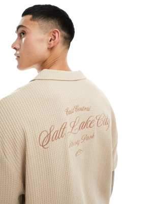 ASOS DESIGN oversized polo in waffle texture with back embroidery