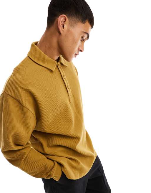 ASOS DESIGN oversized polo sweatshirt in ribbed fabric in brown