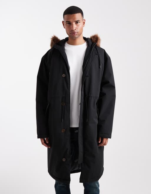 ASOS DESIGN oversized puffer jacket with faux fur hood in black
